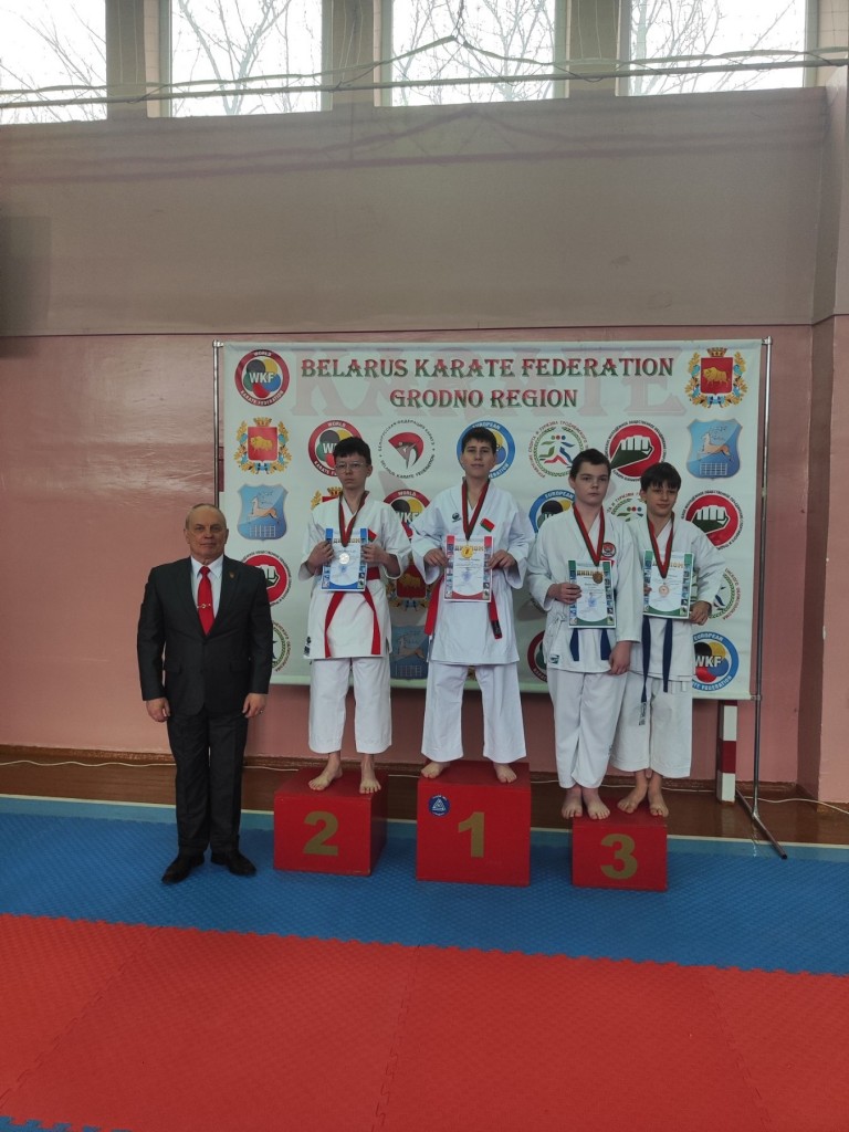 Областная спартакиады школьников по каратэ WKF среди юношей и девушек 2010-2011 г.р. 02.03. 2025 года г. Гродно Пархута Бирута 2 место инд.ката Дернейко Михаил 1 место инд.ката +37529 311 95 17