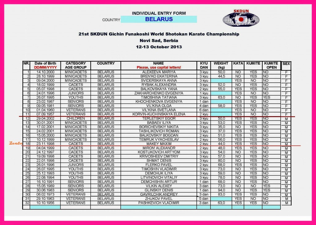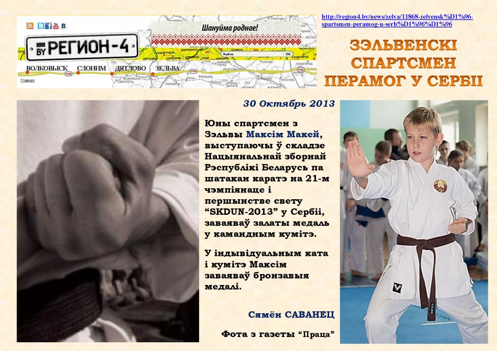 Макей Максим (Фудосин/Зельва), Миронь Александр (Бассай/Волковыск) - 3 место. - командное кумитэ: Костюкович Артем (Сайва-ПолесГУ/Пинск), Бабаев Илья (Академия каратэ/Минск), Макей Максим(Фудосин/Зельва) - 1 место, четыре белорусские команды (состав уточняется) - 3 место.