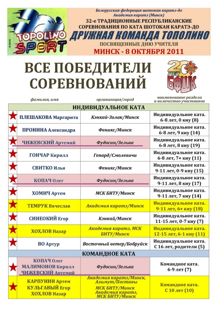 Копач Олег 1 место (это его первая золотая медаль на республиканских соревнований)