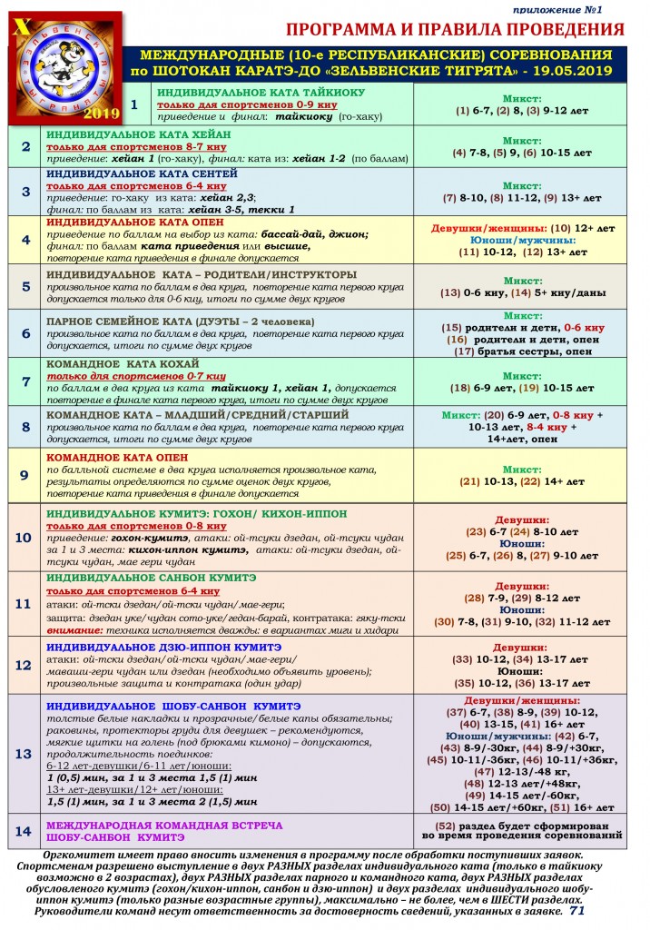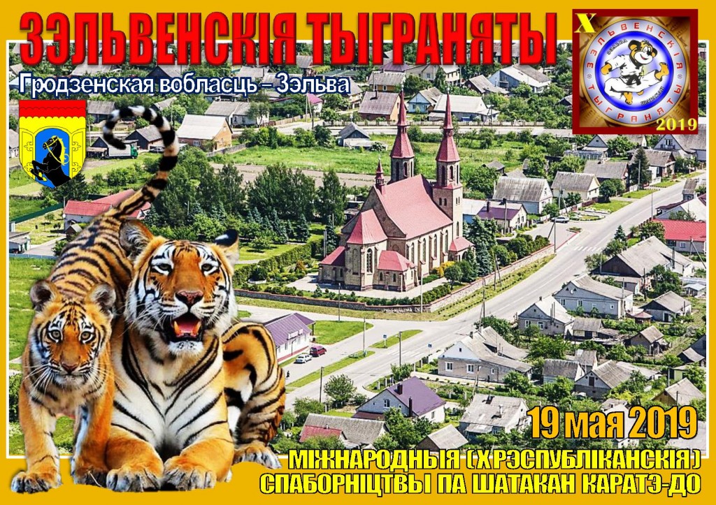 Традиционные брендовые соревнования Белорусской федерации шотокан каратэ-до Зэльвенскiя тыграняты-2019 в юбилейный десятый раз пройдут в Зельве Гродненской области, хорошо известной в отечественной истории и культуре, как владение знаменитых магнатов Великого Княжества Литовского князей Сапегов, место проведения одного из крупнейших в средневековой Европе Ганненскага кiрмашу и многими другими памятными страницами. Инициатором проведения турнира является детский спортивный клуб Фудосин (руководитель — Владимир Ламеко).